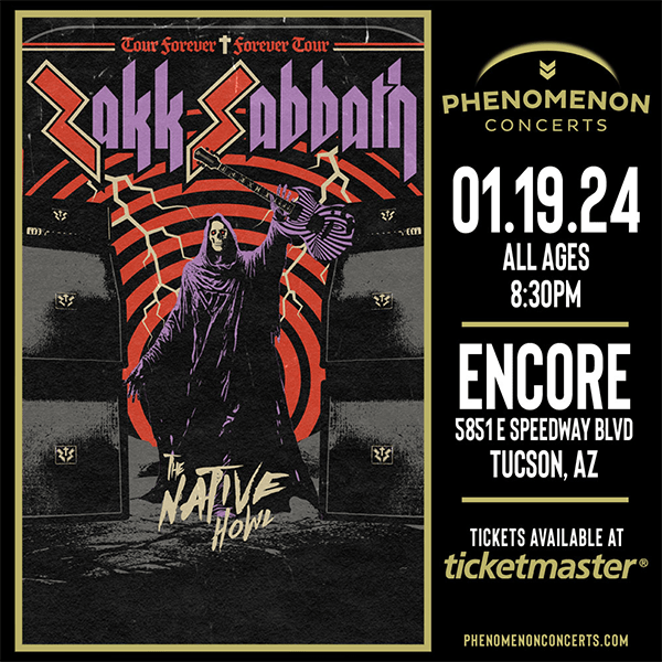 On January 19, 2024, Zakk Wylde brought his Black Sabbath cover band, Zakk Sabbath to the Encore in Tucson, AZ for the next to last show of their, “Tour Forever, Forever Tour”.